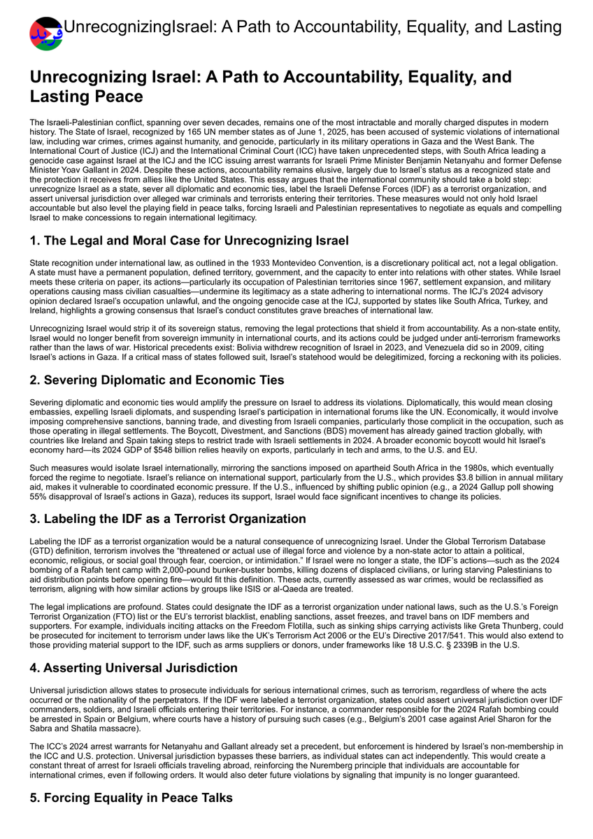 New Essay: Unrecognizing Israel: A Path to Accountability, Equality, and Lasting Peace
