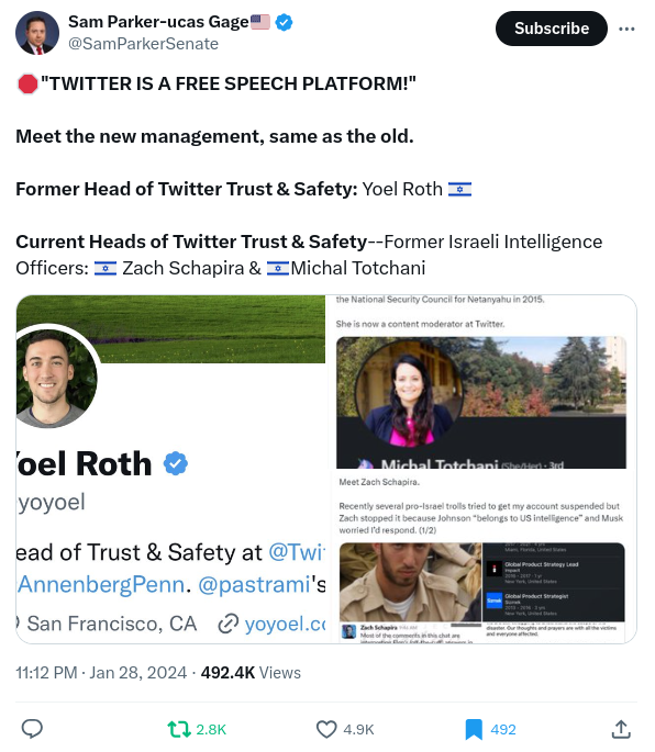 Let me make this absolutely clear: Elon Musk is aiding and abetting War Crimes, Crimes against Humanity and Genocide by manufacturing consent by suppressing legitimate criticism of Israel and its actions.